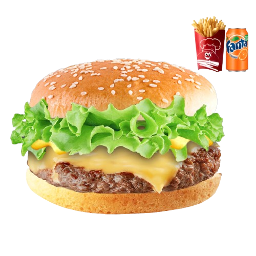 Pain sésame, Steak 90g (Boeuf haute qualité) Salade, Sauce Burger, Cheddar