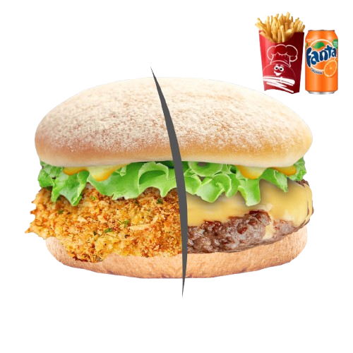 Pain sésame, 2 Steaks 90g, Bacon (Boeuf haute qualité) Salade, Sauce Burger, 2 Cheddar