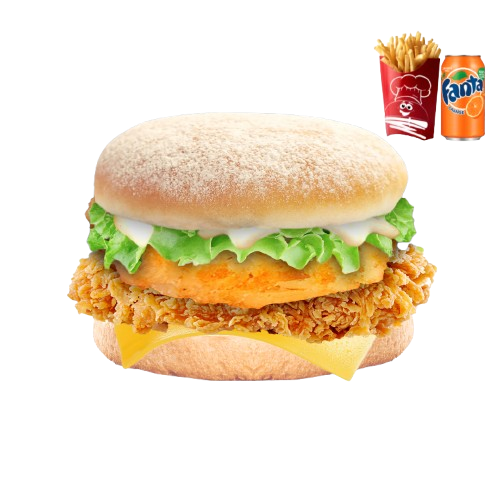 Pain sésame, Poulet pané maison (tenders) Salade, Sauce mayonnaise revisitée, Cheddar
