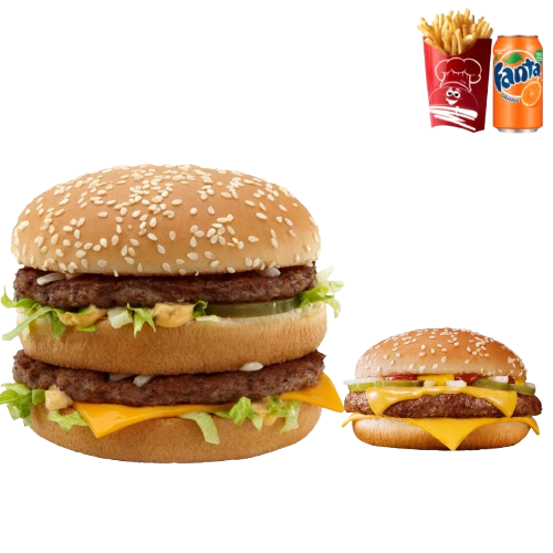 Big pain sésame, steak 90g, Poulet tika, salade, Cheddar, Sauce big M–ketchup